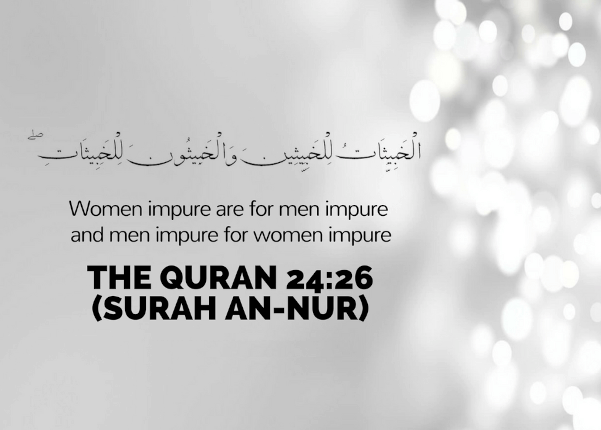 « Les mauvaises femmes sont pour les mauvais hommes, et les mauvais hommes sont pour les mauvaises femmes. Les bonnes femmes sont pour les bons hommes, et les bons hommes sont pour les bonnes femmes. Ceux-là sont innocents de ce que disent les autres. Ils auront un pardon et une subsistance généreuse. »